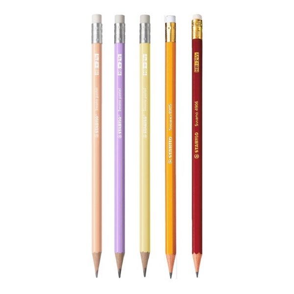Grafitinis pieštukas Stabilo Swano HB su trintuku, įvairių spalvų korpusas